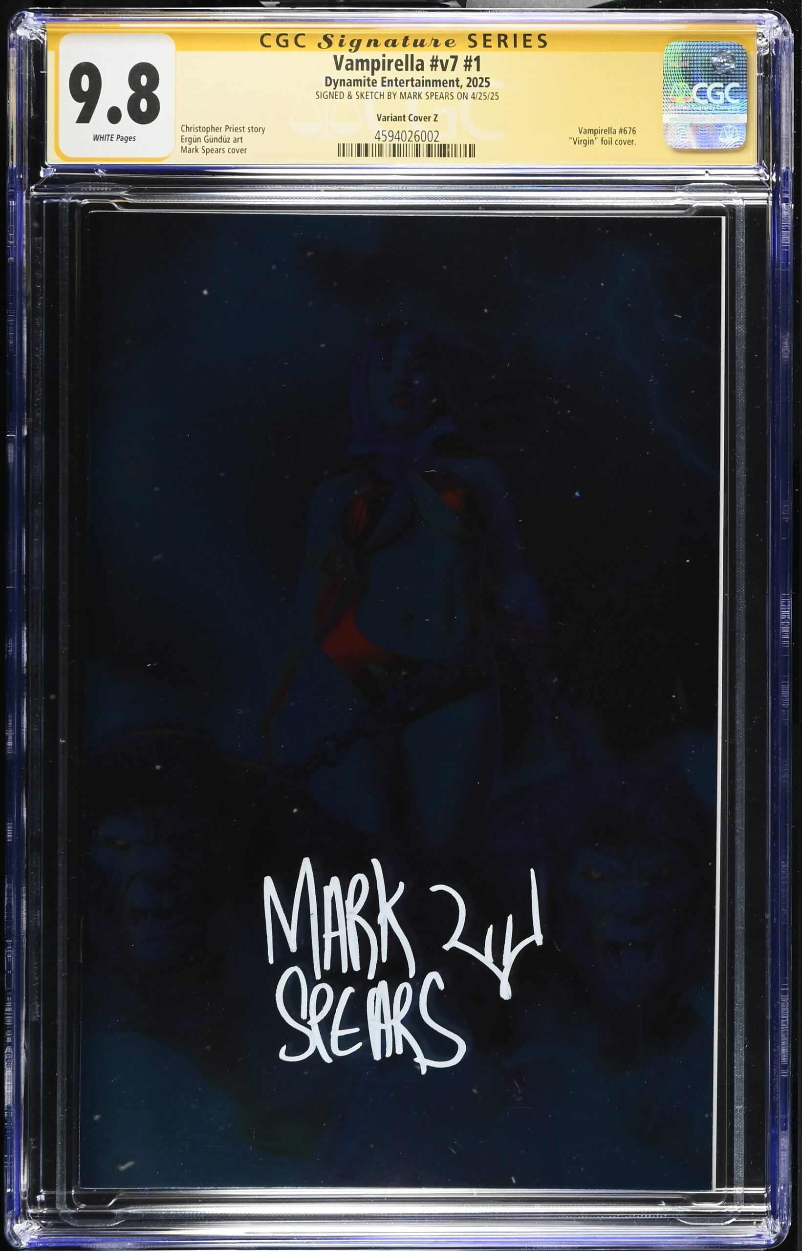 Written by Christopher Priest. Art by Ergun Gunduz. Cover by Mark Spears. The team of Christopher Priest and Ergun Gunduz returns as ‘The Long Night’ begins! Vampirella’s infant son, stolen by her evil twin Draculina, has finally been returned to her. But Vampi does not know the baby, has not bonded with him and, lost and alone, begins spiraling into postpartum depression. A mysterious figure named Cicero arrives, claiming to be Vampirella’s infant son somehow transported 40+ years back from a dark future wherein Vampirella, consumed by bitterness, has become The Witch of Ashthorne, a ruthless matriarch responsible for a nuclear holocaust. Having finally rescued her baby from Draculina, Cicero begs Vampirella, for his sake and the sake of the world, to give the infant back. 32 pages, full color. Rated T+ Cover price $29.99.